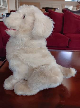 Wonderful interactive Alzheimer's pup by Ageless Innovations -- responds to your motions and touch with eight sounds and movement; see details under photos. Very briefly used. Cash only.