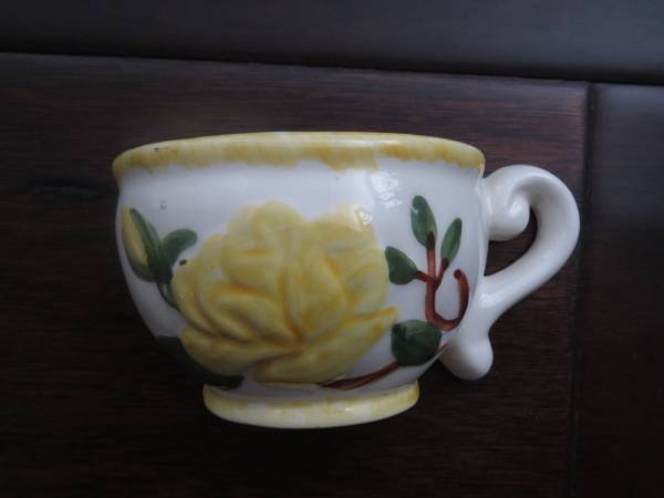 This lovely 1950s teacup makes a wonderful addition to a kitchen wall. Use it just for looks, or perhaps as a match holder, a catch-all or as a planter. In beautiful condition, it's just $5, cash...