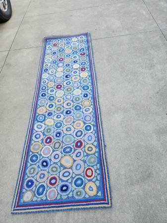 "COINS" pattern in Blue colorway. 30" wide x 94" Long. Good condition.