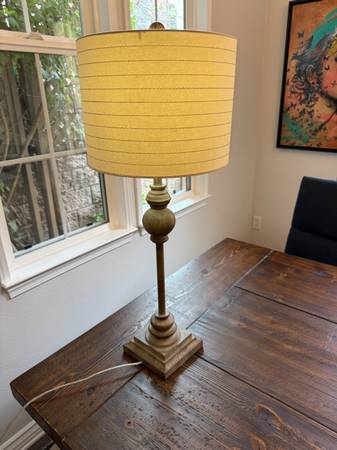 31-inch Farmhouse Table Lamp. Single lamp. Distressed finish. Wood Rustic table lamp with linen fabric drum shade. Living room, bedroom, or study. Creates a romantic and warm atmosphere. This...