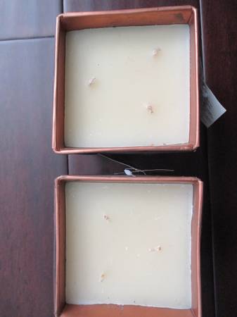 For sale is a very nice pair of candles that I've never gotten around to using. The three wick vanilla candles are in a copper colored metal container with a criss cross black metal holder. The candles measure 5 x 5 x 4 3/8 in. tall. Very decorative. Just $19 for the pair, cash only, please. Thanks.