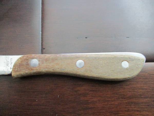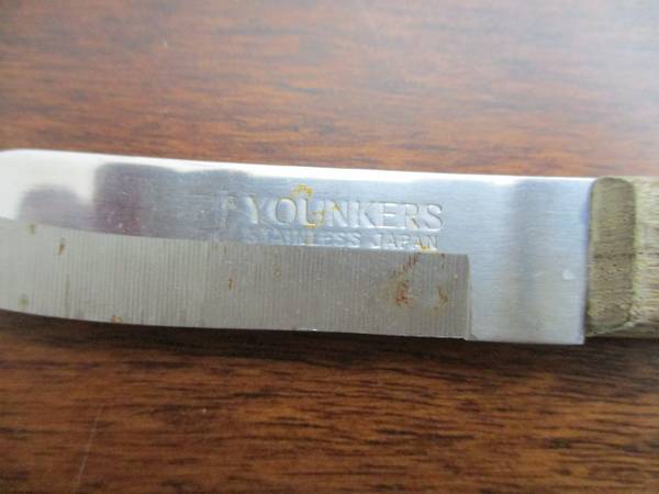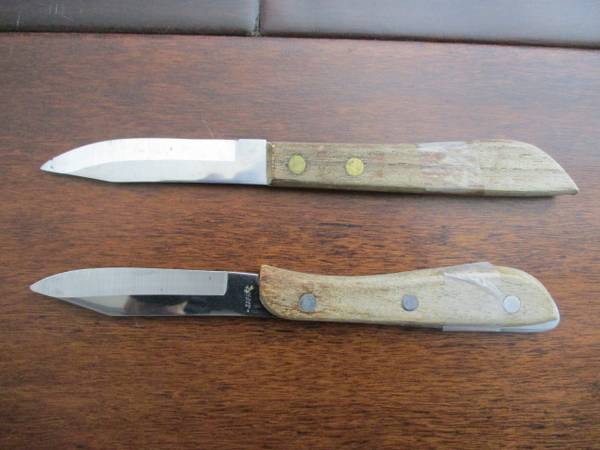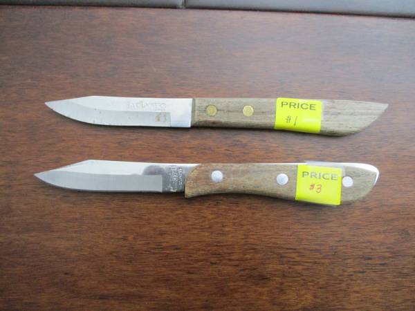 For sale are two paring knives. The Younkers brand paring knife features double rivets with a wooden handle, just $1. The other knife is made of stainless steel with a wooden handle and 3-rivets,...