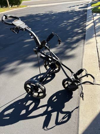 Collapsable golf pull cart. Excellent condition. Lightly used. Rolls easily and has a wheel lock. 2 available, one white, one black.