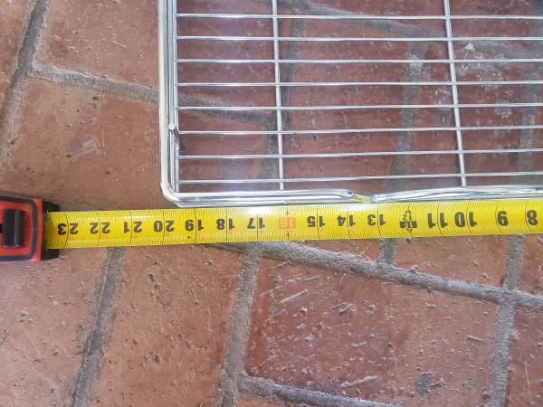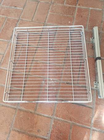 Heavy-duty pull out cabinet organizers. Stainless steel. Good condition. Set of Two. size (1) Length 20.5" width 20" (2) length 20.5" width 17".