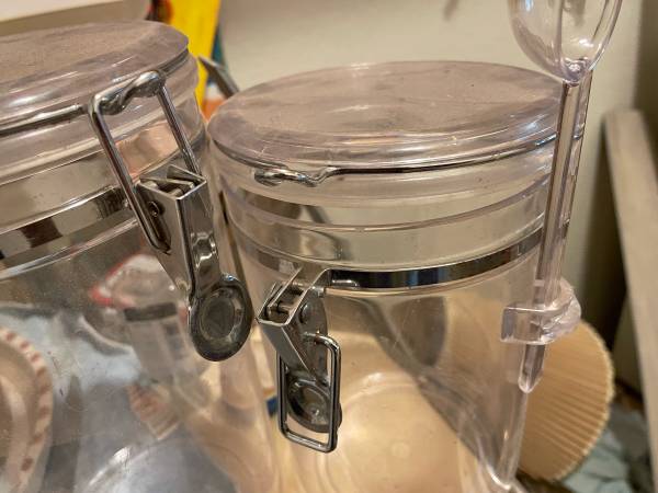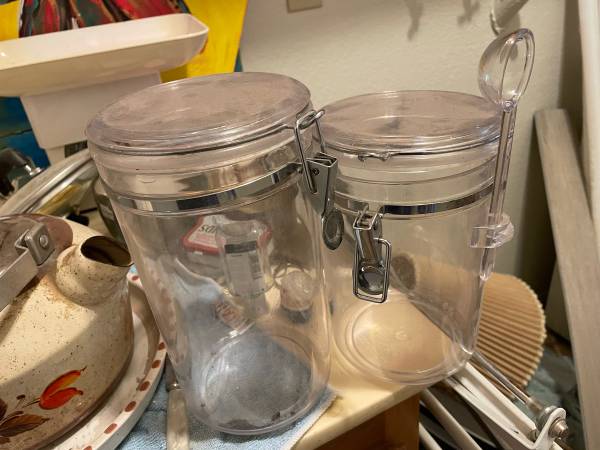Two large plastic, over the counter canisters for coffee etc. With tight lids $5 for both In south Escondido Text or call 7six0six8582nine1 I don’t respond to emails