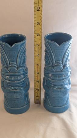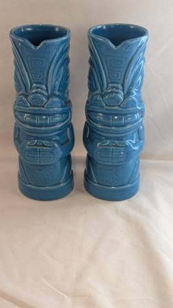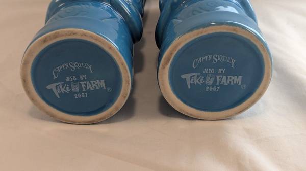 Two Koochie Ku mugs from Tiki Farm, designed by Capt'n Skully. These are from 2007 and have a lovely blue glaze finish. This was one of the winners in the 2007 Tiki Farm design contest. $40 for the...