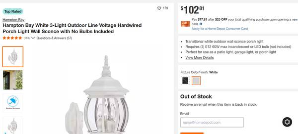 Hi, I'm selling a new Hampton Bay Wall Latern Send response for contact info if interested. Thank you.