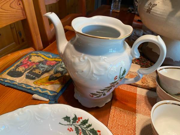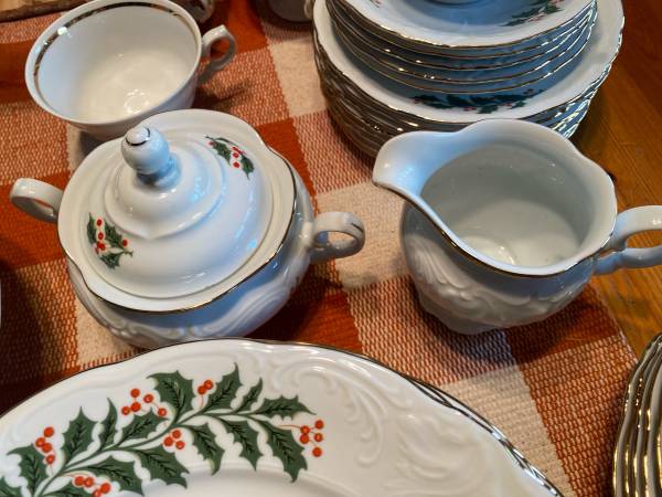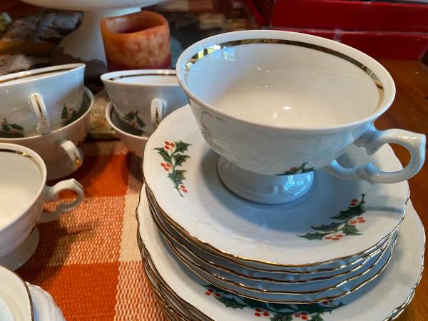 This is an 8 pc set! Only missing 3 saucers and lid to teapot. Includes: 8 Dinner plates, 8 dessert plates, 8 bowls, 5 saucers, 8 coffee/tea cups, Coffee/teapot (no lid) creamer and sugar bowl, and...