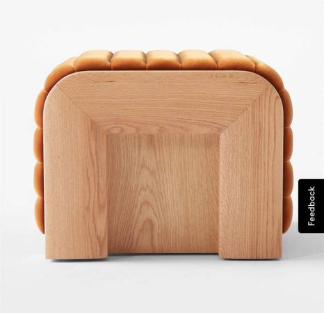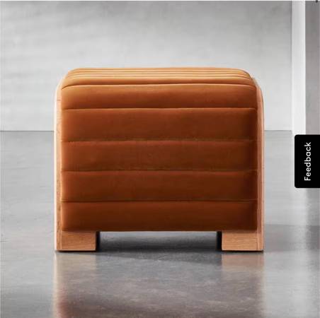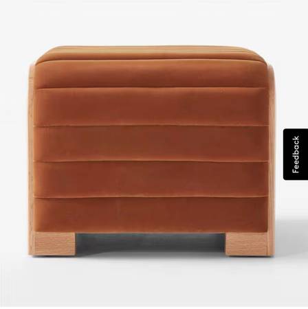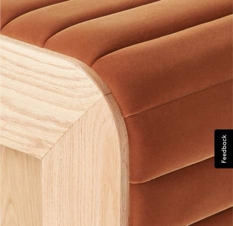 With its waterfall silhouette and stacked channeled cushions, this upholstered bench from Kravitz Design evokes the style of '70s lounge seating. Inset FSC ®-certified oak wood base frames up soft, pillowed upholstery in deep rust, true to the era of inspiration. CB2 exclusive.