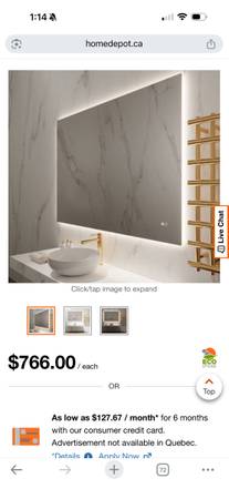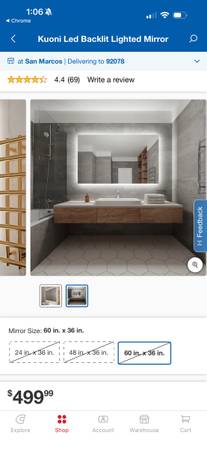 Kuoni Rectangle 60 inch x 36 inch Backlit Mirror with Selectable 3000K-4000K-6000K LED & Defogger 2 new large mirrors still in box - no damage. $300 each