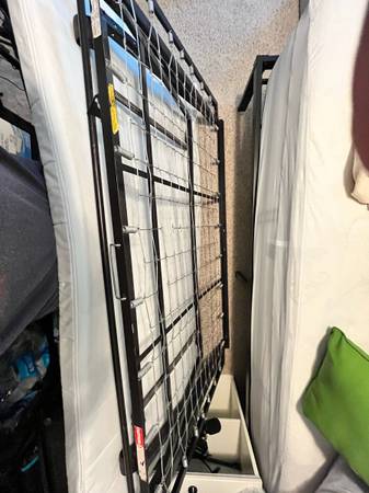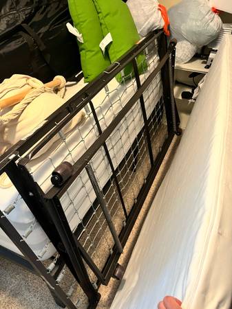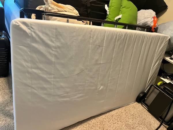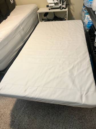 selling a nice trundle that lifts up so not sleeping low to ground. but still retractable to store under bed. The mattress has been slept on 2 times with cover and sheets. mattress has removable/washable cover bought from ikea. nothing wrong with it. just don’t need anymore. measurements are in pictures.