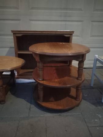 Oak Furniture: One Coffee Table. $35.00 Two End Tables. $35.00 each One Book Case. $35.00 One Roll Top Desk. $150.00