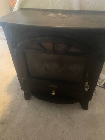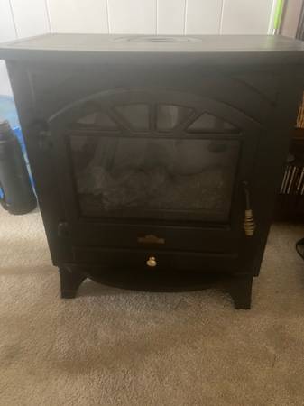 Black electric fireplace lights up like real one and heats up as heater approx 2 1/2’across x 3’ high