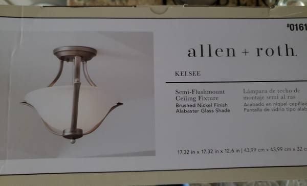 Allen - Roth ceiling light fixture, brushed nickel finish. New in box $45