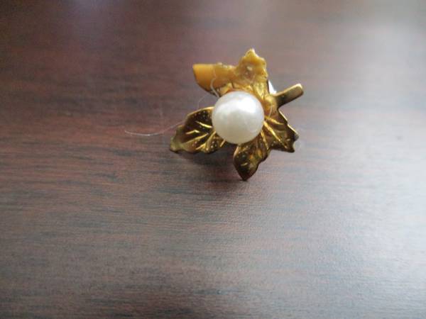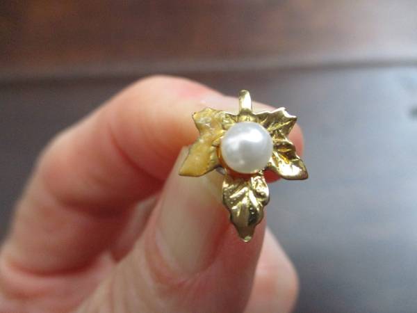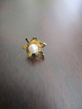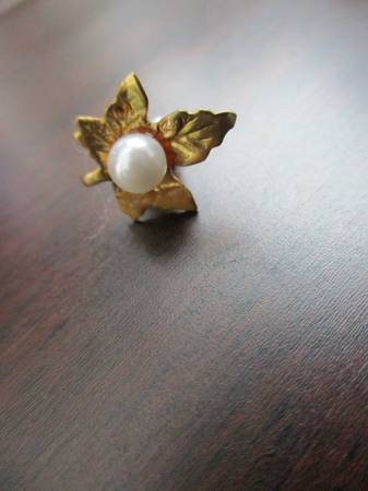This earring belonged to my late mother. Originally, I'm sure this was part of a pair. For sale is this beautiful earring that's perfect if you only wear one. It would also make a nice scarf or lapel pin. The metal is gold tone with a faux pearl in the center. It's for a pierced ear. The earring measures just a hair over 1/2 in. tall. Only $1 cash, please. Thanks!
