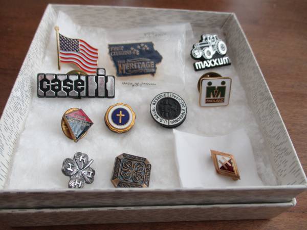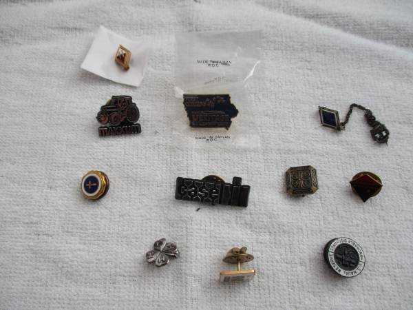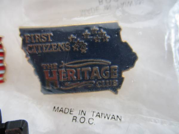 For sale is this group of lapel pins from my late father's estate. All have been used except the First Citizens Heritage Club pin which is in its original plastic packaging. Most of the pins are from the 1940s, 1950s or 1960s. The bank pin and the American Flag pin are probably from the 1990s and 2000s. The prices are as follows: