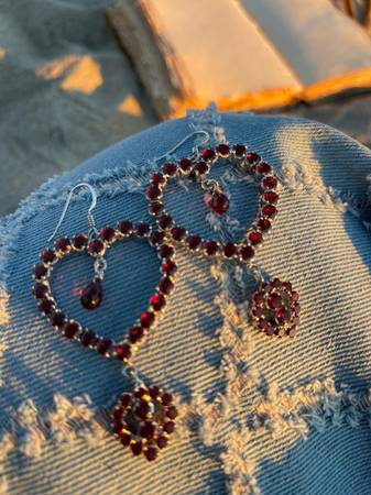 Add a touch of vintage glamour with these deep red, heart-shaped crystal earrings — handcrafted to catch the light and every glance. Perfect for date nights or special occasions ❤️