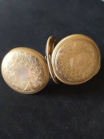 Vintage Gold Case Waltham Pocket watch made in 1897, with double Hunter closure, still keeps accurate time. 14K Essex Guaranteed 20 Years gold case. One cover doesn't clasp.