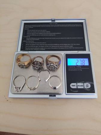 27.8 grams. All bands are stamped 18K. I price gold at 90% of spot. Gold price fluctuates daily, so you can do the math to get a current sales price.