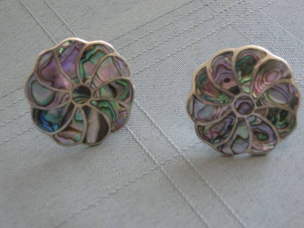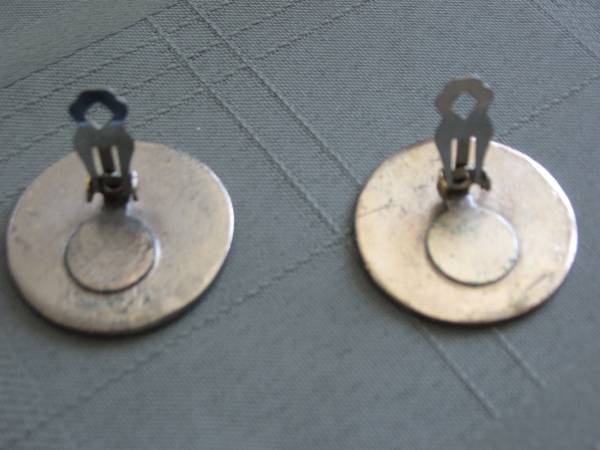 clip earrings, 1.5 " round, each pair $20 matching pendant/pin $20