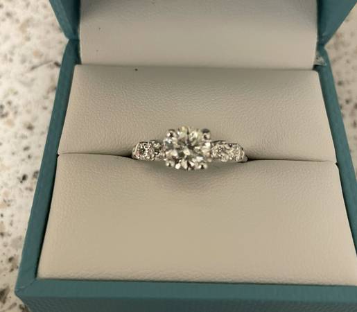 SOLITAIRE IS 1.27CT ROUND GIA CERTIFIED, RING HAS ACCENT DIAMONDS ON EACH SIDE ANOTHER 1/2CTW