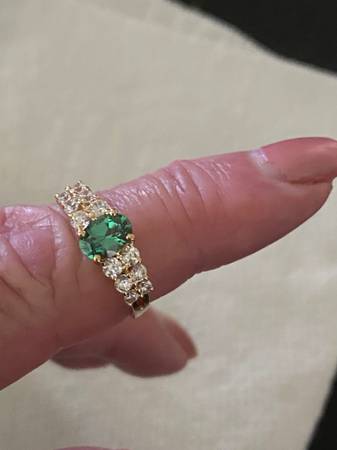 14k yellow gold ring with cz’s. Size 7. Stamped 14k. Nice low setting so you can stack it. Weighs 2.5 grams of 14k gold
