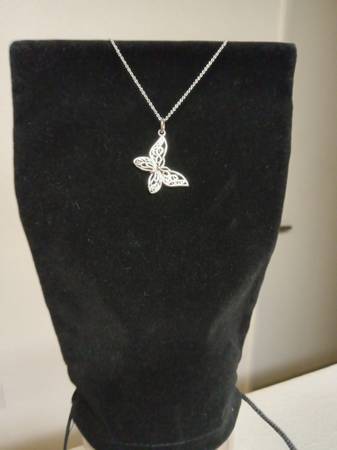 New - Butterfly is approx. 1" x 5/8" and hangs on a sterling silver chain made in italy. (If you would like a longer chain I have some you can purchase instead for a little more $).