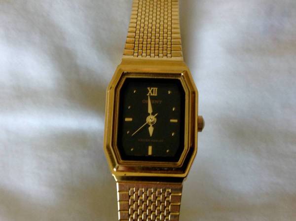 Orient watch. Yellow gold tone. Never been worn, just needs a battery. Will fit a 7.5" wrist or bigger or smaller, strap adjusts