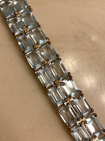 Sterling silver topaz bracelet. Weighs 32 grams and stamped 925. Bracelet will fit up to 7.5” wrist. I also have a matching ring, see last pics. $175 each Cash only, no scammers