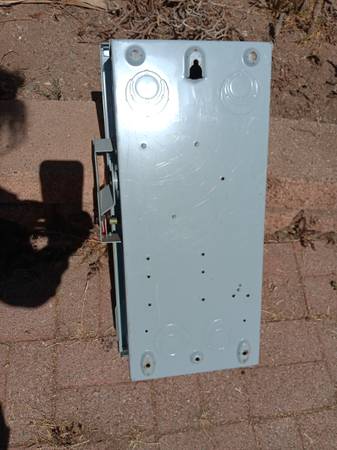 Siemens cat. no. GFN 323. 100 amps 240 volts non-fusible box. Used, in excellent condition. Measures 25 inches x 11 inches x 5 inches. $60.00.
