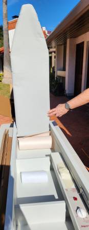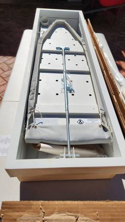 42 Inch Built In Ironing Board With Electric System, Light and Timer Lighted on timer 42" Ironing Board Cabinet Size 52" x 15" x 7" Brand New Includes Accessories such has Hot Iron Rest and Hangar...