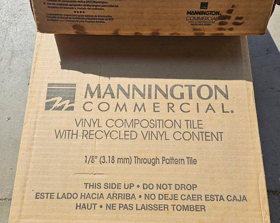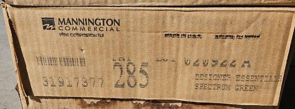 Three boxes of green 12" x 12" x 1/8" commercial floor tile.