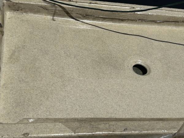 SHOWER PAN Custom Cultured Granite. NEW! Custom made Cultured Granite Shower Pan. 60 inch by 34 inch. Center Drain. NEW, still in plastic cover.