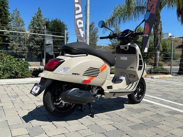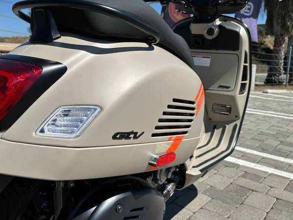 The latest model takes the most iconic features of the GTV such as its distinctive exposed tubular handlebar and low headlamp on the front mudguard and adds elegant high-tech elements that emphasize its innovative character. The single-seat, two-tone saddle, fairing and matt black details are just some of the features that give the Vespa GTV its bold, sporty personality, while the five-spoke matt black wheel rims and contrasting orange graphics on the side are a nod to the racing world.HIGH-TECH