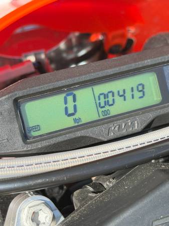 Practically brand new and immaculate 2021 KTM Freeride E-XC electric motorcycle. All factory paperwork in hand along with the title. Garage kept and ready for new owner. Private Party sale - No taxes, licensing, dealer set up fees, etc. Comes with a like new OEM KTM electric charger. Bike is fully charged and ready to go. Only 419 miles with full dirt motocross tires recently installed.