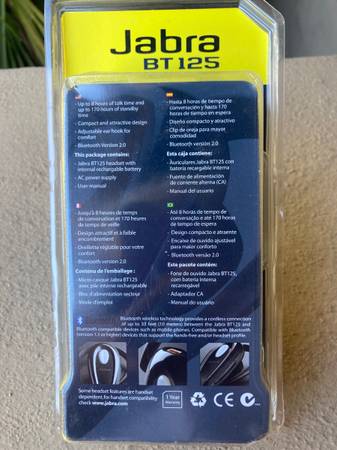 Jabra BT125 Black & White Wireless Bluetooth Single Ear-Hook Cordless Headset. Brand new in box, never used. Cash Only Text me at 858-23on1-114four IF THE SEE THE POST THE BT HEADSET IS STILL...