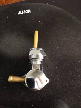 Chrome, nice petock, 22mm with 1/4" barb fuel line, right side. Fits many Harley's.