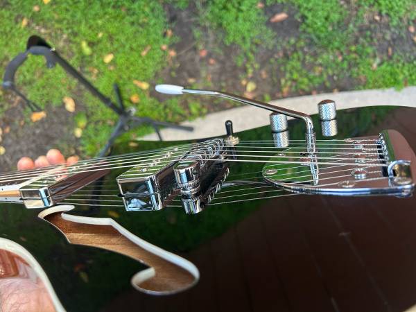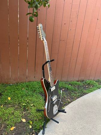 Just about brand new dipinto galaxie in the spruce/mahogany/black colorway, bought from dipinto guitars out of Philly. These are pretty difficult to find outside of reverb, this one specifically is a model they don’t always throw around for sale. It had a jazzmaster style trem and a fender-esque headstock but angled which is fun. Great playing versatile guitar. Something you don’t get everyday.