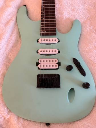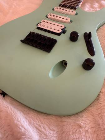 IBANEZ S521- MINT CONDITION! SEA FOAM MINT GREEEN MAT FINISH-- SUPER THIN AND VERY LIGHTWEIGHT HARDTAIL, THRU- BODY SHREDDER GUITAR. DIRECT MOUNT PICK UPS - VAN HALEN STYLE! YOU GOTTA TRY IT! A REAL BEAUTY AND AWESOME AXE. EXTREMELY COMFORTABLE AND EASY TO PLAY. SUPER LOW ACTION, AND NO CRAZY TREMOLO PROBLEMS TO DEAL WITH, JUST STRAIGHT UP PLAYING ON A MELTS LIKE BUTTER NECK.