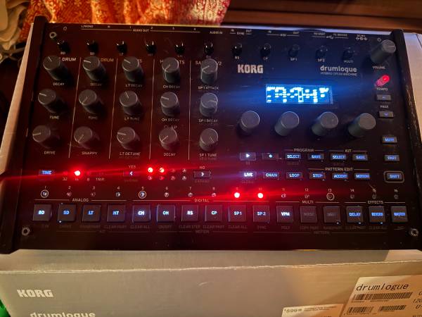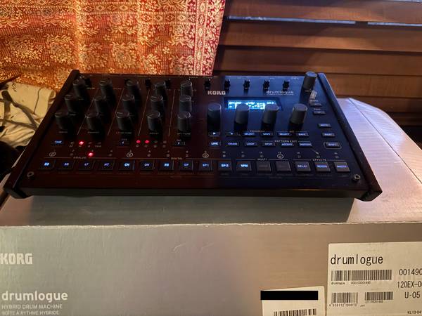 Korg Drumlogue - $250 - Korg's future classic drum machine. For the price-point, you can't get a much better drum machine with customizable synth engines that are proactively created by users. Self contained, beautiful design, light, but also durable, a joy to place on your lap and put together a wicked track. Comes with original packaging, power supply, and documentation.