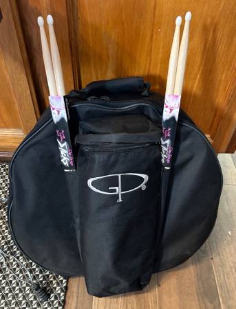 You are looking at a complete snare drum student model. The drum is made by groove percussion and is new. The snare is chrome over steel and has a brand new top head. The drum is 10 lug for better tuning ability and comes with its own soft sided back pack type carrying case. The case has a front zipper pouch to carry the stand and also to carry 2 brand new pairs of drum sticks and the tuning key. The snare fits in its own zippered pouch to protect it. The case has straps like a back pack for easy carrying for school or to your gig! The drum has been professionally tuned and will make a great addition to your arsenal or also for the first time drum buyer as well. Feel free to call or text.m me for more information. Or come by and check it out! I have loads of snares available. All of my drums are in perfect rust free condition. I ( ONLY ) accept cash or Zelle as payment! Thanks for looking and have a great week!