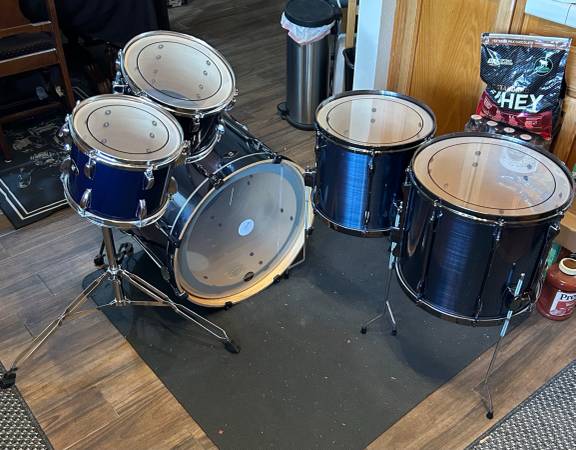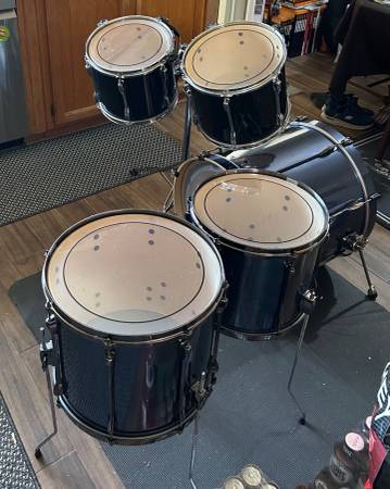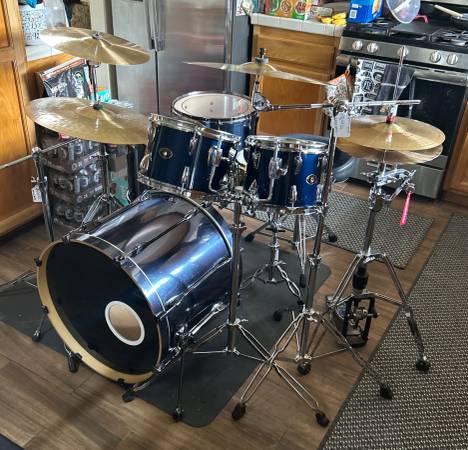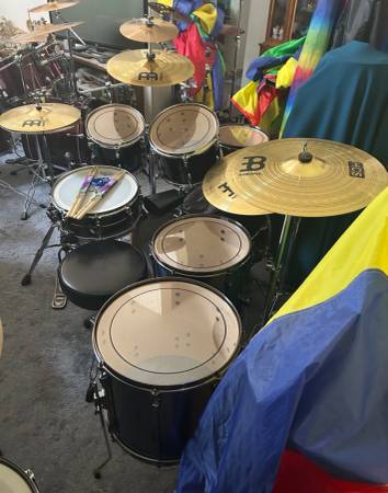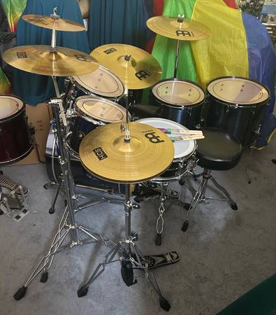 You are looking at a 5 piece set of drums all made by Tama. The set is in excellent condition and has all brand new heads on all of the toms. The sizes are upper toms 10. 12. And the floors 14. 16. And the bass is 22 x 18 the bass and 2 floor toms are superstar and the two upper toms are Tama Stagestar. The set comes with everything that you see in the pics even the tom fork and double braced stand. The bass is virgin ! The set has a full set of Meinl HCS cymbals in brand new condition and has a Paiste 502 splash. The set sounds awesome and will be great for the rocker wanting to get into a larger kit. You will also see pics of it set up with hardware and cymbals and they are included. All included package! Feel free to ask questions or come by and check out all of my incredible sets that I have available. Don’t forget to check out all of my other drum related listings here on Craig’s List ! I have a ton of stuff and I am available every day. Call or text me to set up a time to come by! I only accept cash or Zelle as payment. Thanks for looking and have a great week!