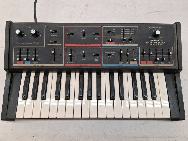 The Moog MG-1 is a sleeper synth with serious analog mojo—fat basses, juicy leads, and a unique polyphonic section that lets you layer rich, vintage textures. Built by Moog for Realistic (Radio Shack), it’s got that classic Moog filter and creamy tone, but at a price that won’t break your wallet—pure sonic nostalgia in a compact package.