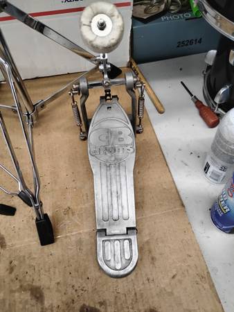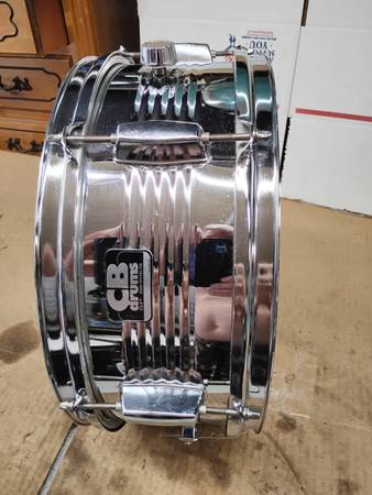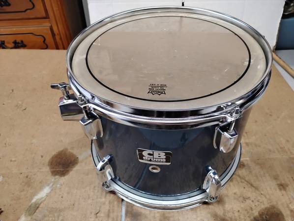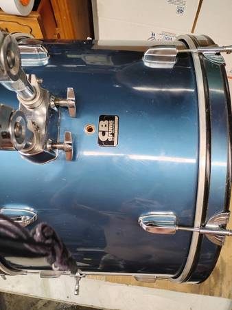 Set of Carl Bruno drums otherwise known as CB. 5-piece drum set. All hardware included, mostly CB hardware. The Chrome on the drums and the hoops is very good, there's some issues on the wrap in certain places, like all modern drum wraps seems to have. The sizes are 22 in bass, 16-in floor, 12 and 13-in rack toms, 14 in snare. The snare is in very nice condition. The heads are decent.