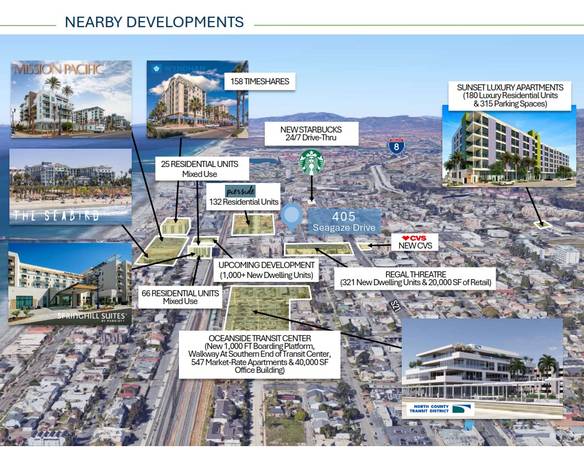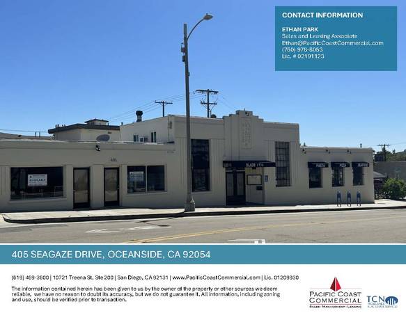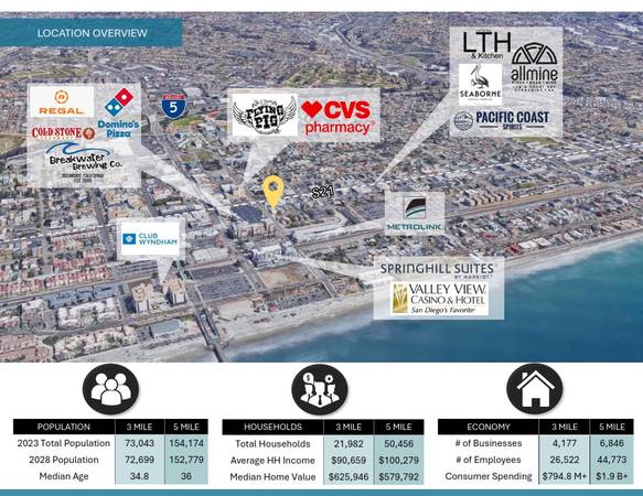 Location: Close proximity to the Oceanside Pier, Transit Center, the brand-new Mission Pacific Hotel, the Seabird Hotel & next door to high-traffic Blade 1936 restaurant