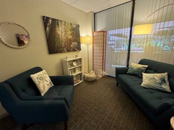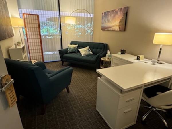 Nicely furnished, windowed office in the gorgeous Timbers (formerly Jenny Craig building) in Solana Beach/Del Mar. Included are utilities, receptionist, kitchen stocked with filtered water coffee & tea, wi-fi, use of conference/group rooms. Easily accessible from I-5. Beautiful, lush courtyard with large water feature, 24/7 security, free parking. Office is in beautifully appointed, quiet executive suite with other therapists, psychiatrists, family lawyers. $275.