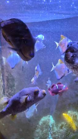 He is more vulnerable now because his eye swelled up and its either healing or he only has 1 eye now. So I want to rehome him to a calm saltwater aquarium that has a lot of live rock obviously so he can chisel down his ever growing teeth.