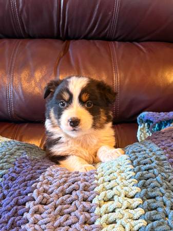 Aussies Two Girl black tris One Male blue merle Rehoming fee