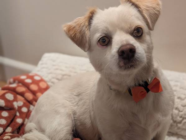 Great little mixed pekingese. Was a rescue, about 3 years old, we've had him for 18 months. We live where there are a lot of coyotes, no fenced in yard so it's just not safe for him to be out when we're not home & we work full-time. Fully potty trained, neutered, all caught up on shots, super loving, affectionate, wants to be with people all of the time. Great with other dogs & cats.
