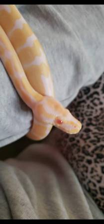 1 albino ball python is about 4 ft long and a normal ball python about 3 ft long need new homes since I had my son i only have taken out to feed they have come a little nippy but with more handling...